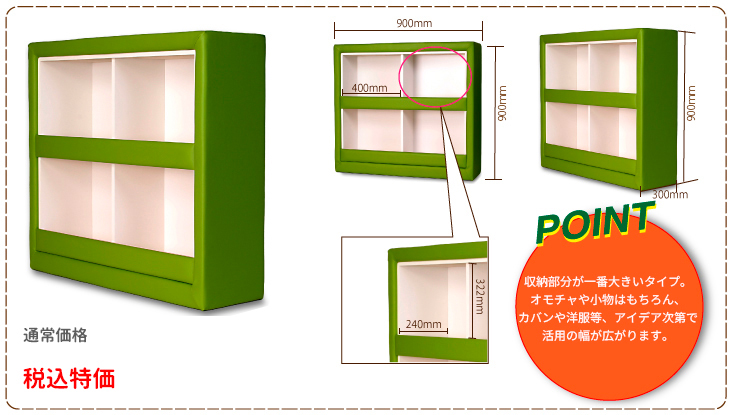 収納部分を4分割にし収納部分が一番大きいタイプとなります。お子様の荷物をたっぷり収納できます。