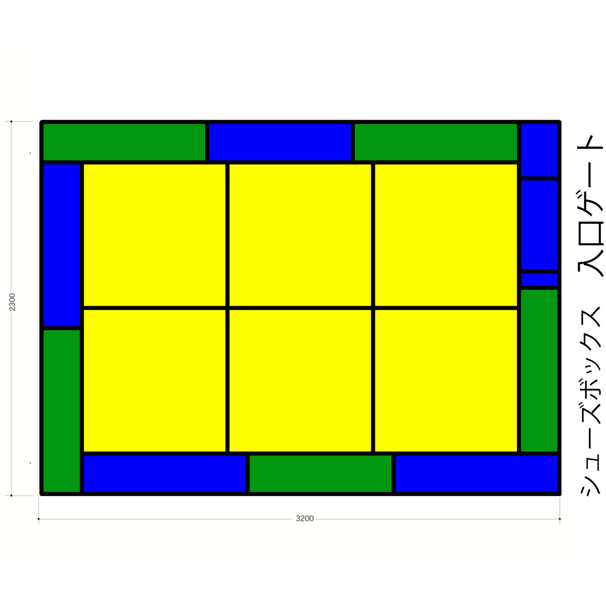 ブロックサイドガード S BSG-S W1150×D250×H400 2個 ブロックサイドガード L BSG-L W1275×D250×H400 6個 ブロックシューズボックス BSG-SB W1275×D250×H400 1個 ブロック入口ゲート BSG-IG W1275×D250×H400 1個 フロアマット FM-1 W900×D900×t50 6枚 |